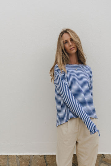 Lia top- Navy white stripes