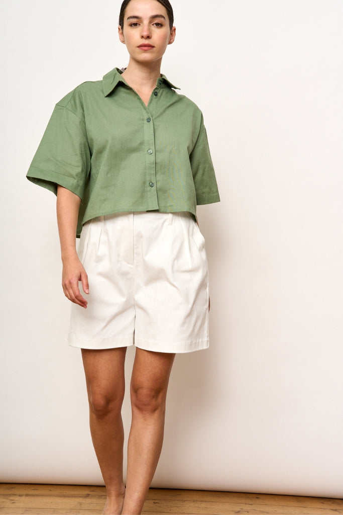 The Gal button up crop- Green