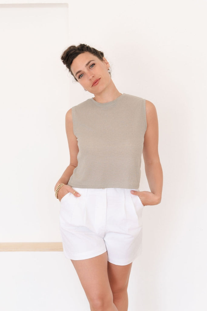 A stylish cropped tank top with a straight-cut silhouette. Flattering, incredibly soft, and versatile — perfect for both casual daytime looks and dressed-up evenings.